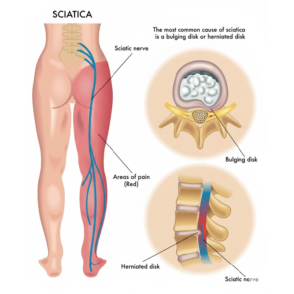 Sciatica pain happens when the sciatic nerve gets pressed or irritated. The pain starts in the lower back and can travel to the hips, buttocks, and legs. It often feels sharp, burning, or shooting. With proper care and therapy, this pain can be reduced and managed.